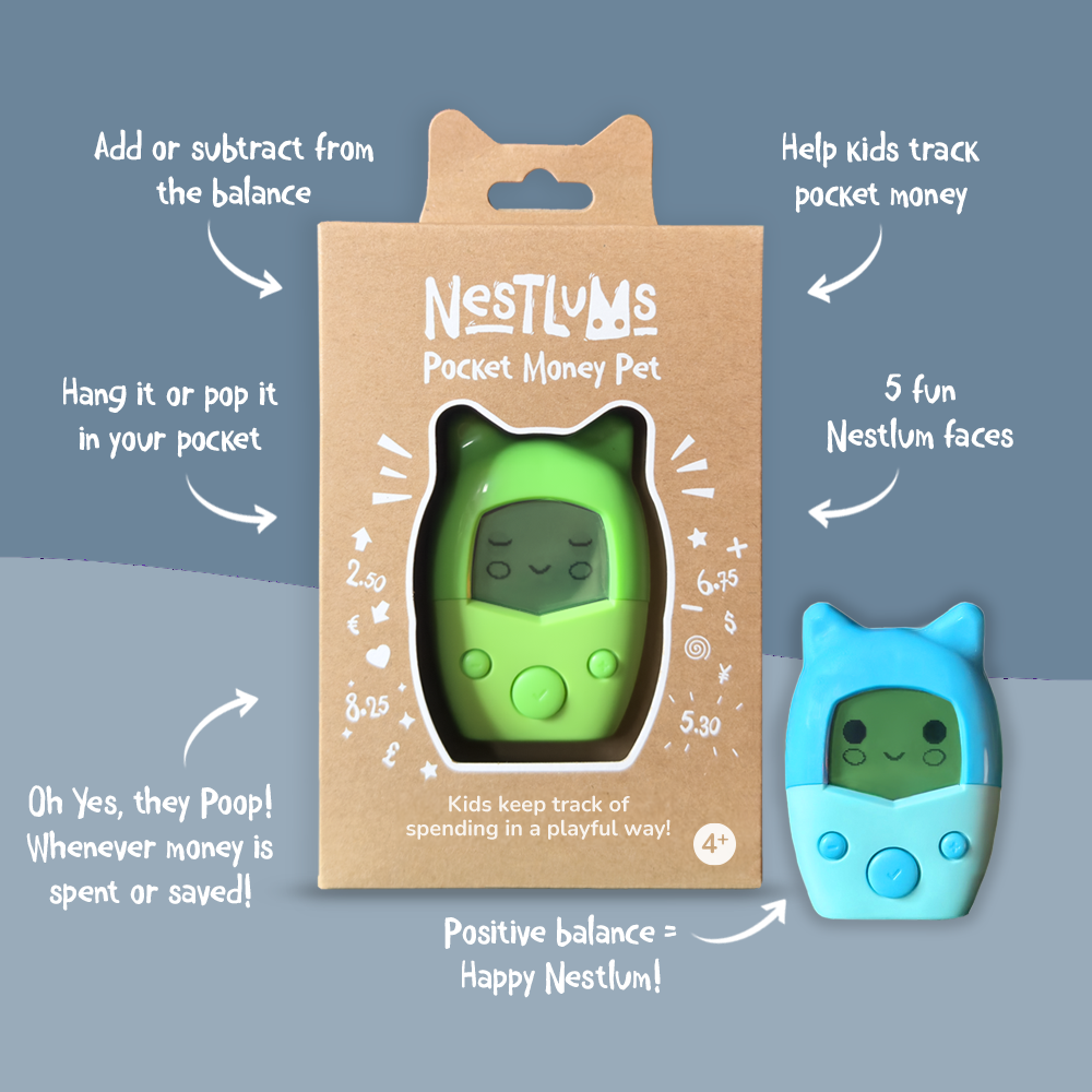 Nestlums combine the charm of a Tamagotchi with the practicality of a piggy bank. These lovable critters are designed to be carried everywhere and can be attached to a child’s bag or belt loop. Each time a parent updates the pocket money balance on the Nestlum itself - whether adding or subtracting money - it responds with a playful “poop”. Eye rolling for parents. Utter joy for youngsters.